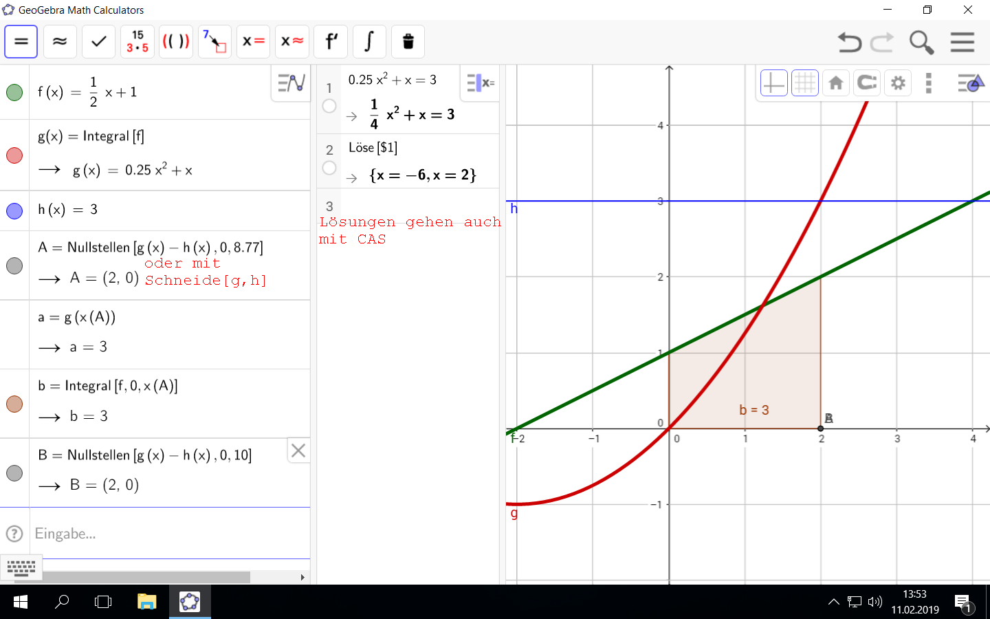 … in allen Fällen kommt x=2 heraus (die andere Lösung x=-6 ist meiner Meinung nach nicht gesucht, da b>0 angenommen werden kann).